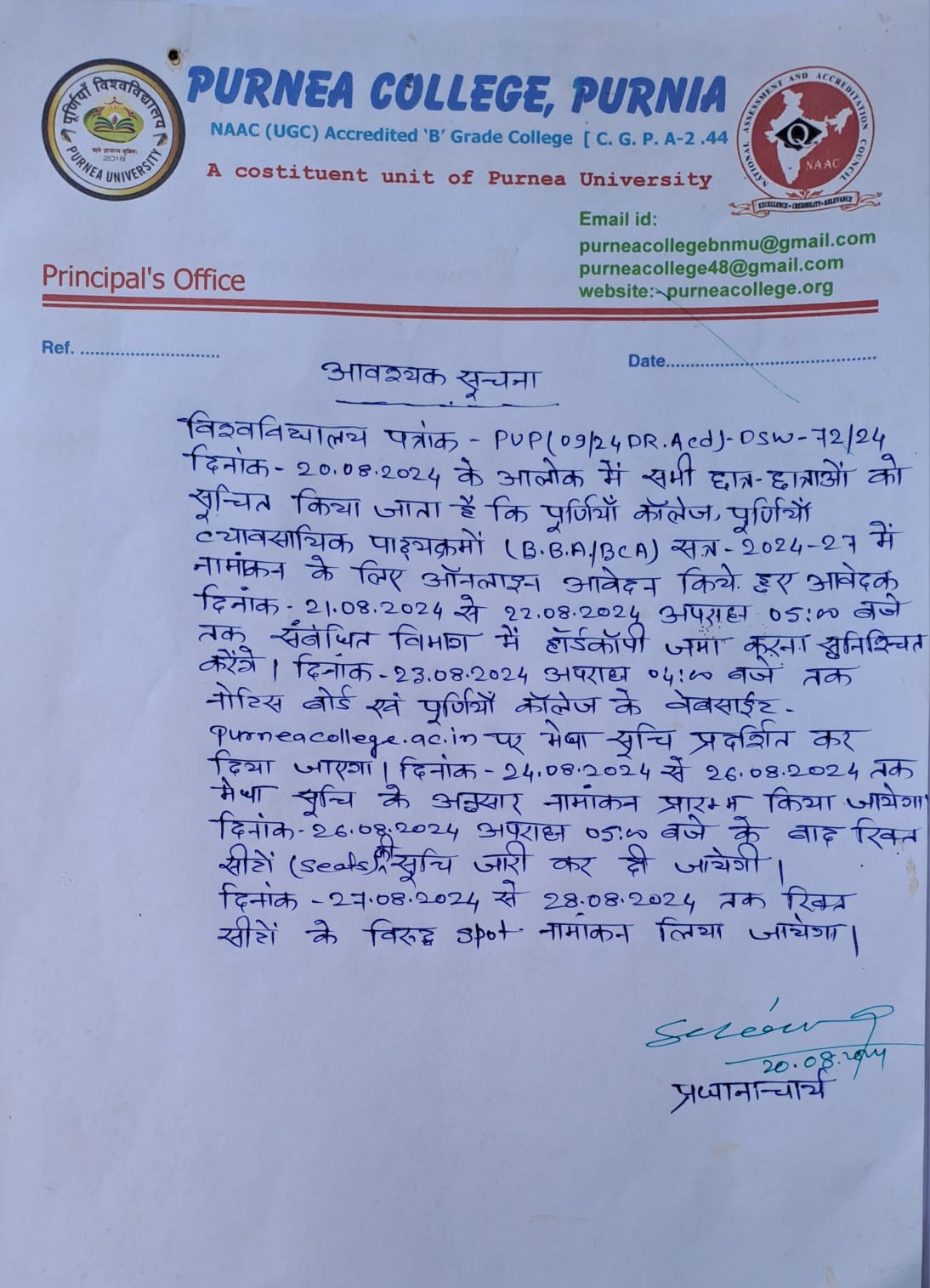 NOTICE REGARDING VOCATIONAL ADMISSION
