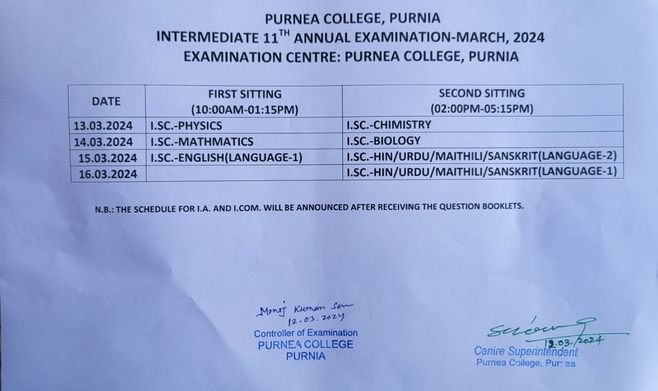 NOTICE REGARDING 11th ANNUAL EXAM SCHEDULE